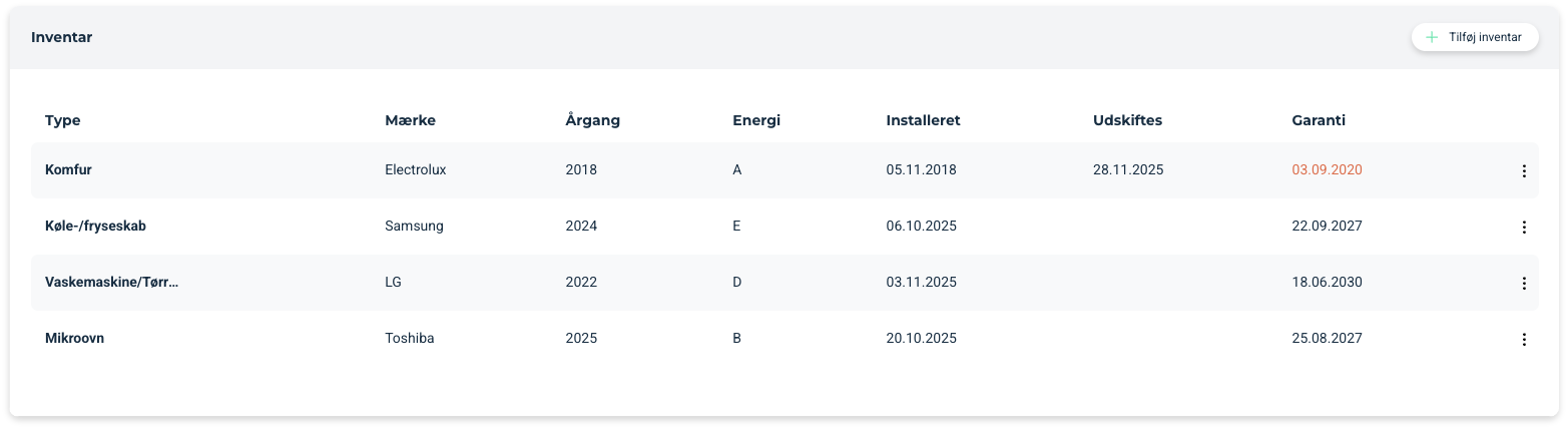 Dette giver et mere effektivt overblik og en mere ensartet håndtering af inventar på tværs af lejemål.